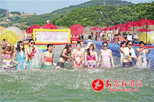 瀛湖的初夏,萬千變化。清晨,山和水還在夢中酣睡,一輪紅日從東面湖的盡頭沐浴而出,爬上山頭,霞光染紅了湖水,染紅了天空,湖面顯得更加清幽。傍晚,落日熔金,給群山鍍了一層金邊。此時,群鳥歸隱,群魚入眠。江風(fēng)攪動湖水,湖面波光瀲滟,明麗動人。晚歸的漁民搖著一葉扁舟在寂靜的湖面上飄蕩,成為畫中最美的風(fēng)景。習(xí)習(xí)涼風(fēng)也吹散了白日的暑熱,舒適愜意,是休閑避暑的好去處。若遇雨天,天地間扯起絲絲銀線,水天一色,如煙如霧,籠罩在瀛湖上空。那若有若無輕煙一樣的雨霧輕盈地飄蕩在湖面上、群山間,翠屏山莊上的亭臺水榭、湖心碧螺島上的螺峰塔,全都沐浴在水蒙蒙的輕紗中,如夢似幻?!拔魅角鞍橈w,桃花流水鱖魚肥。青箬笠,綠蓑衣,斜風(fēng)細雨不須歸?!贝藭r,湖里的魚兒成群結(jié)隊地游出水面透氣,正是釣魚的最佳時機,湖邊不少垂釣愛好者正興致勃勃地冒雨釣魚,完全不顧雨已打濕了衣服。湖中,一葉葉漁舟和游船在雨中漫游,幽幽絲竹之聲從游船中飄出,像游走在煙雨迷蒙的江南水鄉(xiāng)。
