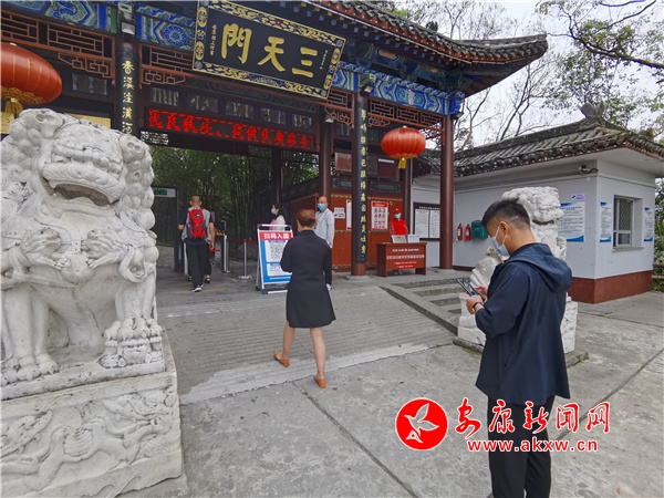 部分志愿者在志愿服務驛站為游客朋友提供咨詢服務、同時備有普通應急藥品,清涼油、藿香正氣水等防暑降溫物品供游客適用。一旁的工作人員在景區(qū)出入口引導游客配合測溫、查驗健康碼、掃場地碼、異地游客查驗48小時核酸陰性證明等,用實際行動助力全國文明城市創(chuàng)建。?