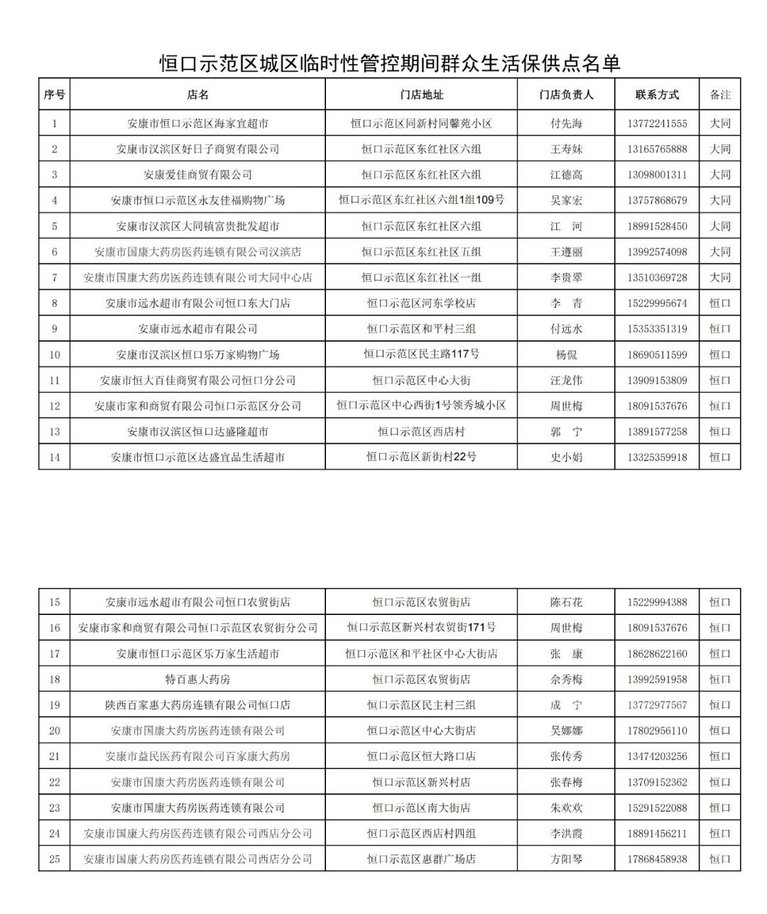 附件:恒口示范區(qū)臨時性管控期間群眾生活保供點名單?
