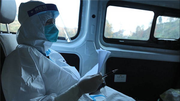 11月25日中午,忙完第一輪核酸采集,再接到流調(diào)通知單后,王康又立馬帶著他的“小伙伴”前往三里社區(qū)為居家隔離人員做核酸檢測,溝深路滑,因前幾日陰雨天氣路面濕滑,在上一處陡坡時(shí),車輪瞬間開始側(cè)滑,但是時(shí)間緊迫只能一試再試,大概試了20余次,在村上壓路車的幫助下,又試了兩次車子終于緩緩啟動(dòng)。喜悅之余他們就即刻趕往隔離群眾家中,“我們快一點(diǎn),再快一點(diǎn),就能讓等待的人少受一點(diǎn)冷”,這是“大白”們共同的心愿。