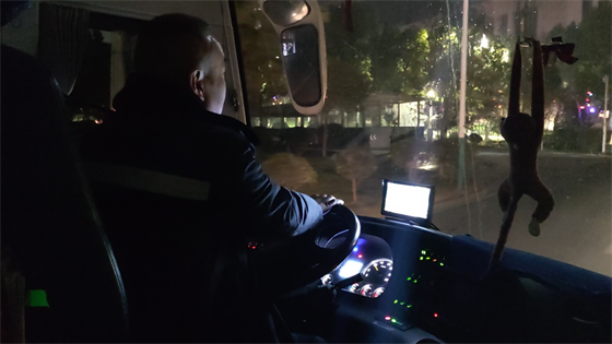 環(huán)顧車內(nèi),面包、牛奶、熱水……這里更像是他們的第二個(gè)家。我和司機(jī)師傅開玩笑說(shuō):“今天出發(fā)夠早的啊,太陽(yáng)都還沒上班呢。”司機(jī)輕描淡寫的說(shuō):“這算晚的了,以前去更遠(yuǎn)的鎮(zhèn)上,四五點(diǎn)就要出發(fā)。”他雙眼筆直的看向前方,仿佛看見了比路更多的東西,而在我眼里,那不過是車燈照不到盡頭的一片迷霧。