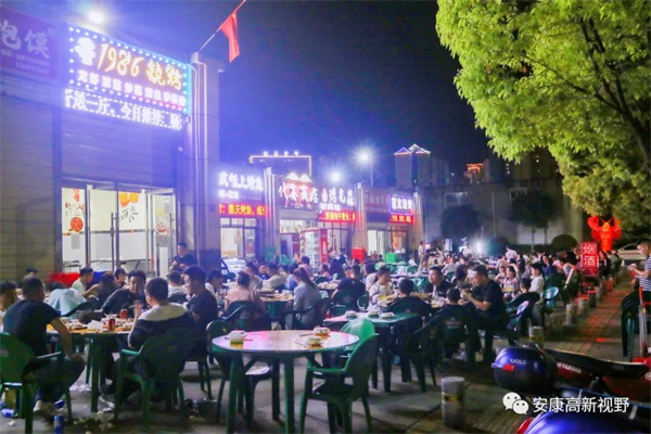 逛累了之后,美食之旅隨之開啟,除了各酒店餐飲可享受安康特色美食外,小吃夜市也成了市民游客在高新區(qū)饕餮一頓的不二選擇,走進美食街,燒烤、火鍋、小龍蝦等特色美食讓人目不暇接。華燈初上,商家已進入滿載狀態(tài),招呼聲、碰杯聲此起彼伏,店里、店外座無虛席,一桌桌市民游客享受著擼串啤酒的假日自在時光,夜經濟在這個“五一”進一步激發(fā)消費的同時,也帶回來了人氣和煙火氣。