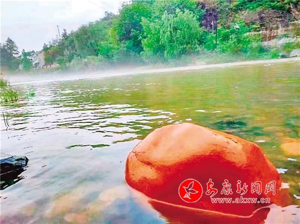 藍(lán)天隱現(xiàn),陽(yáng)光開始熾熱了,黃蠟石微微泛亮,細(xì)膩粘手,似油脂溢出,可雕琢、可擺弄、可收藏,漢江玩石者稱之為“安康玉”。拾得泛紅的原石,被寄寓“桃花石”,大抵有交上“桃花運(yùn)”的幸哉。