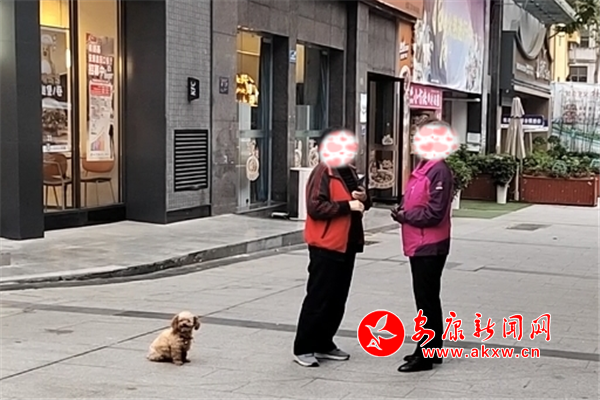 11月8日下午,興安公園小廣場內(nèi)有市民遛狗未牽繩,寵物犬綠地隨意便溺。(圖文/周薇)