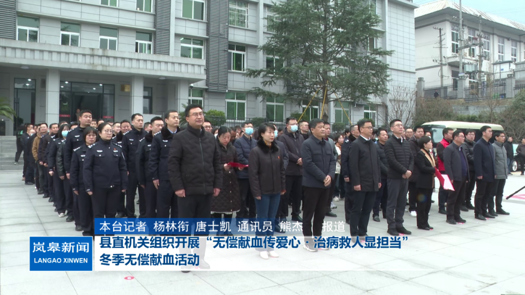 12月28日,嵐皋縣直機關(guān)組織的“無償獻(xiàn)血傳愛心·治病救人顯擔(dān)當(dāng)”冬季無償獻(xiàn)血活動在縣委、縣政府機關(guān)大院內(nèi)開展??h委常委、宣傳部部長歐陽周菲宣布活動啟動;副縣長伍玉蘭主持活動;部分在嵐縣級領(lǐng)導(dǎo)參加獻(xiàn)血活動。?