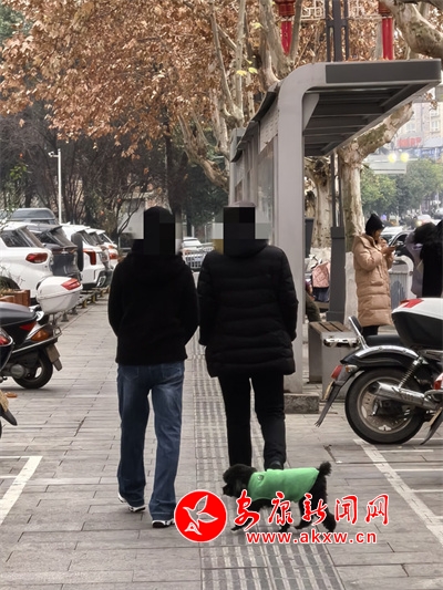 1月14日,在金州國(guó)際城門(mén)口,有市民遛狗不牽繩。?