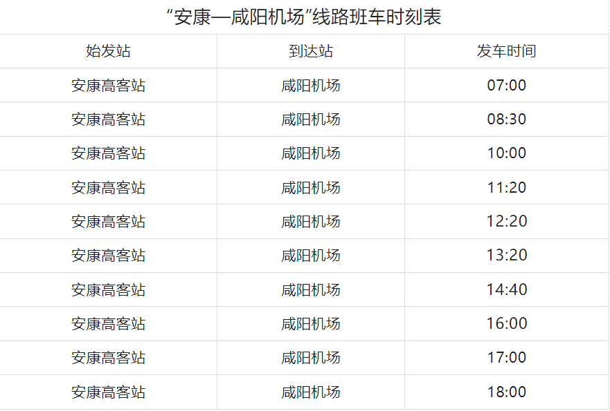 “安康—咸陽機(jī)場”客運(yùn)線路發(fā)車時(shí)間調(diào)整