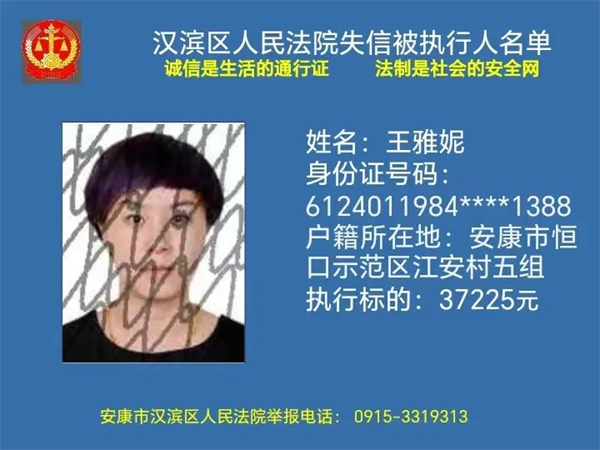 2月1日安康市漢濱區(qū)人民法院曝光新一批失信被執(zhí)行人名單快看都有誰轉(zhuǎn)發(fā)提醒更多人↓↓↓?