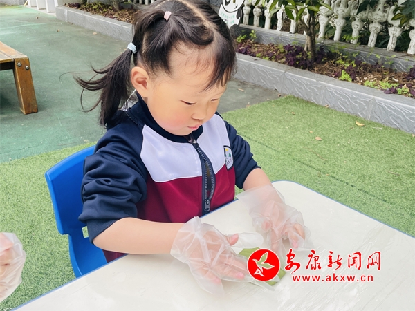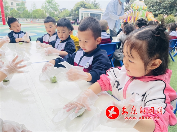 為了豐富課程資源,促進家園合作,在清明節(jié)來臨之際,安康高新幼兒園小五班開展了“濃濃節(jié)日情 巧手做青團”活動。(通訊員 潘健華)?