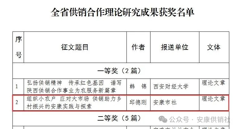 按:本文系安康市供銷合作社黨組書記、理事會(huì)主任邱德剛署名理論文章,立足供銷助力鄉(xiāng)村振興的安康實(shí)踐與探索,深入闡述了“組織小農(nóng)戶應(yīng)對(duì)大市場(chǎng)”的內(nèi)在邏輯,把群眾“組織起來”投身經(jīng)濟(jì)合作的實(shí)踐方法,在助力鄉(xiāng)村振興、推進(jìn)共同富裕實(shí)踐中探索出一條可復(fù)制可推廣的典型經(jīng)驗(yàn),其理論內(nèi)涵、實(shí)踐邏輯為在推進(jìn)鄉(xiāng)村振興中更好發(fā)揮供銷社的獨(dú)特優(yōu)勢(shì)和重要作用提供了有益參考,具有較強(qiáng)的指導(dǎo)意義。該文在中華全國供銷總社和陜西省供銷總社“薪火相傳七十載,砥礪奮進(jìn)新時(shí)代”主題征文中獲評(píng)“全省供銷合作理論研究成果一等獎(jiǎng)”。