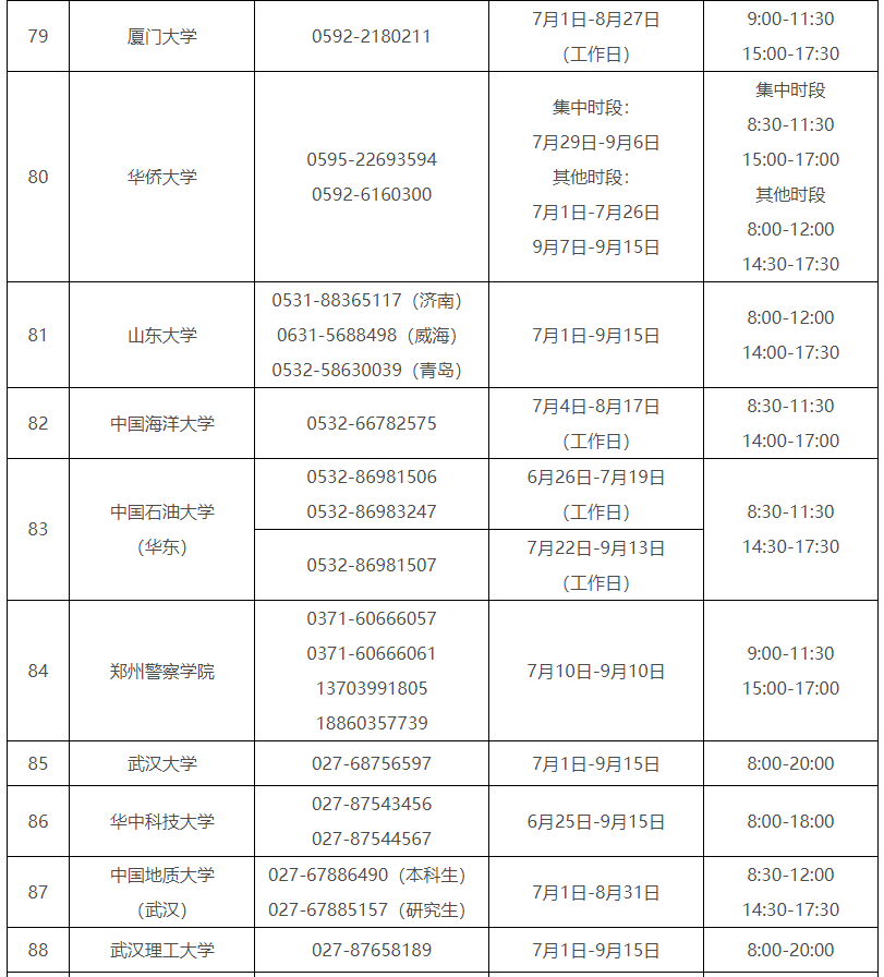 各?。ㄗ灾螀^(qū)、直轄市)和中央部門所屬高校同步開通了熱線電話,電話號碼與開通時間可查看匯總表。