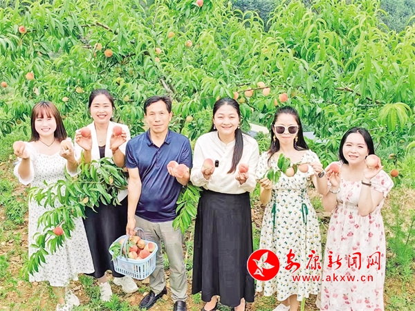 “水蜜桃熟啦,歡迎大家來采摘!”陳顯攀一邊說,一邊搓著手。果園里是一群正在采摘桃子的游客,最惹眼是身著彩衣的年輕姑娘們,她們挎著竹籃,穿梭在桃樹林間,艷陽映紅了蜜桃,也映紅了她們的臉龐。