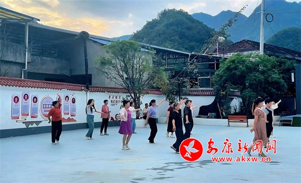 “123、223、323,把手伸直……”,在文化活動廣場的大舞臺上,中壩村舞蹈協(xié)會會長徐開珍正在耐心指導(dǎo)村民們晨練。