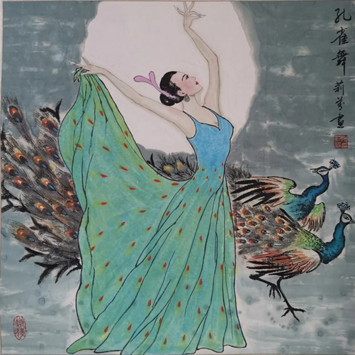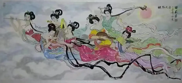 解大姐是陜北人,性格開朗、直率,說話中間或帶出一些濃重的陜北口音。雖說她主業(yè)從于政界,但她微笑的背后卻潛藏著不可掩飾的藝術(shù)天賦,揮發(fā)著令人奪目的藝術(shù)才情。繁雜的政務(wù)工作之余,她創(chuàng)作不輟,堅(jiān)持不懈,居然在多個(gè)藝術(shù)門類收獲頗豐,好評連連。寫小說,她寫出幾十萬字的長篇出版發(fā)行;寫劇本,竟拍成了電影予以公映;學(xué)國畫,亦讓藝術(shù)界的大咖贊口不絕。我雖不才,空有浮名,但深耕藝界多年,對于其中的好賴還能分出一二。我感到,一個(gè)人的人品和藝品基本一致,解大姐的藝術(shù),是扎根于她熟悉的陜北大地的藝術(shù),是生長在山峁峁上經(jīng)歷風(fēng)霜雨雪的藝術(shù),就像那陜北倔強(qiáng)的疙瘩柳,散發(fā)著對土地對生活的親近和熱情,對人生價(jià)值實(shí)現(xiàn)的不屈和追求??吹剿膰嬓伦鳎嘘儽奔艏埖让耖g藝術(shù)的滋養(yǎng)和影響,真切而樸實(shí)。她的飛天人物系列,泥古而不落窠臼,使我想到疙瘩柳條隨風(fēng)擺動的婀娜風(fēng)姿,溫溫潤潤,令人遐思和向往;她的花鳥畫作,使我想到陜北山野一片蒼茫之間,一朵兩朵盛開的山丹丹花,嬌艷得令人不忍觸手;她的山水畫作,又猶如陜北山原上嫩黃的棗花,洋溢著撲面而來的質(zhì)樸、清新和率真之氣。