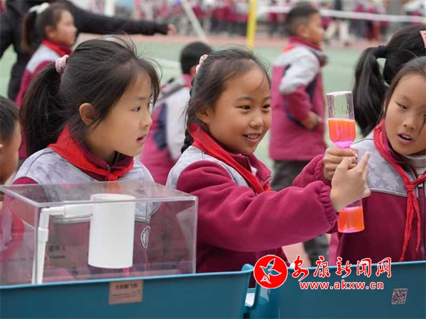 在各個科學(xué)實(shí)驗(yàn)項目前,同學(xué)們駐足停留,認(rèn)真觀察、反復(fù)操作,沉浸在知識的海洋與科技的奧秘中,操場上不時傳來陣陣驚嘆聲。“我最感興趣的是機(jī)器人,通過手柄遙控能讓機(jī)器人模仿奔跑跳躍,跟我們打招呼,真是太神奇了,我以后要更加努力地學(xué)習(xí)科學(xué)知識,探索更多的未知領(lǐng)域?!蔽迥昙壱粚W(xué)生激動地說。