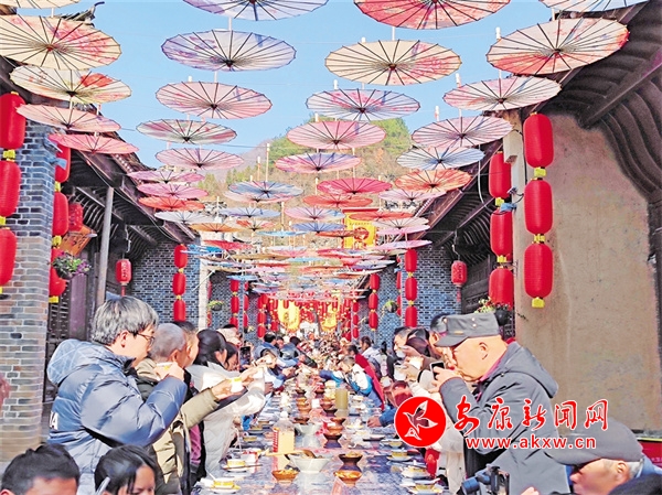“觀眾朋友們大家好,這里是雙河口古鎮(zhèn),歡迎大家來到庖湯桌宴的活動現(xiàn)場!”冬季庖湯長桌宴的舉辦地,是修葺一新的驛道文化廣場,游客在這里觀看精彩的文藝節(jié)目,品嘗本土特色美食,欣賞茶馬古道歷史浮雕,品味雙河口魅力故事。該項目是2024年7月19日洪災(zāi)后,為修復損壞的護坡,依托現(xiàn)有地形條件,盤活原有閑置資源重新改造的文化廣場項目,于當年10月1日建成投用。項目建成后,古鎮(zhèn)的景區(qū)框架拉得更寬,文化活動載體變得更大,文化內(nèi)容展示更加生動,配合12月31日建成投用的省級鄉(xiāng)村振興示范鎮(zhèn)展陳室項目,雙河口的歷史文化和人文故事變得可感可知,成為古鎮(zhèn)一處新的地標性“打卡地”。