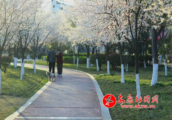 花朵盛開,柳樹垂絲,遠(yuǎn)處的城市建筑若隱若現(xiàn)。人們?cè)诮吢?、休憩,享受著春日里的美好時(shí)光。此時(shí)的畫面將現(xiàn)代文明與自然生態(tài)完美融合,讓人感受到城市中一抹特有的清新與寧靜。