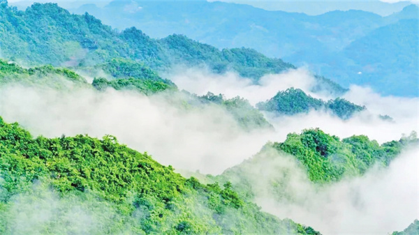 當(dāng)春風(fēng)揉碎了漢江的晨霧,紫陽(yáng)縣青中村的云海便在山谷間舒展開(kāi)來(lái)。這座懸于北緯32°的山間秘境,以800米海拔托起流動(dòng)的瓊宇,用茶田織就青黛的綢緞。我循著四月春風(fēng)的足跡,在云海與炊煙交織處,觸摸到山水田園詩(shī)最鮮活的注腳。