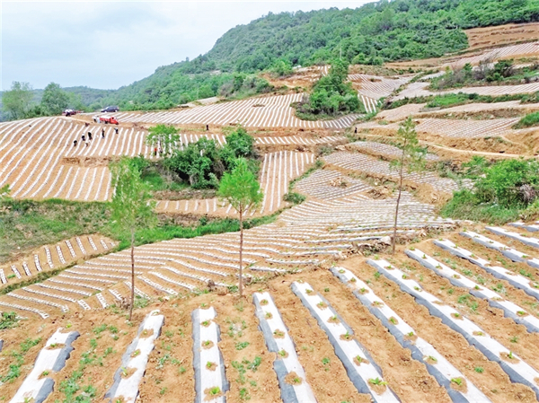離開(kāi)錢(qián)河梁,走進(jìn)海棠寺村的梯田里,種煙大戶吳義剛正迎著晨曦帶上20余名村民搶墑移栽。23年的種煙歲月在他臉上刻下溝壑,也沉淀出“致富良經(jīng)”。他瞇著眼睛笑著說(shuō):“去年新種的80畝煙田毛收入24萬(wàn),今年?duì)幦≡俣噘嶞c(diǎn),給孩子換臺(tái)好車(chē)?!碑?dāng)目光撫過(guò)嫩綠的煙苗,手掌摩擦著滴灌管道,吳義剛驀然間變得激動(dòng):“雖然今春干旱嚴(yán)重,但是政府配發(fā)的抗旱設(shè)備讓移栽成活率大大提升,我們的心血總算沒(méi)有白費(fèi)。”村支部書(shū)記劉登平頂著烈日算起產(chǎn)業(yè)增收賬:“今年450畝煙田已基本栽完,11個(gè)大戶帶著小戶干,戶均增收能破萬(wàn)元。”