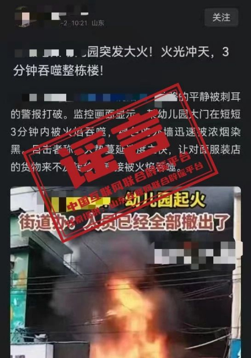 通報:一幼兒園發(fā)生大火,32名孩子被困?實為使用“AI工具”編造的謠言