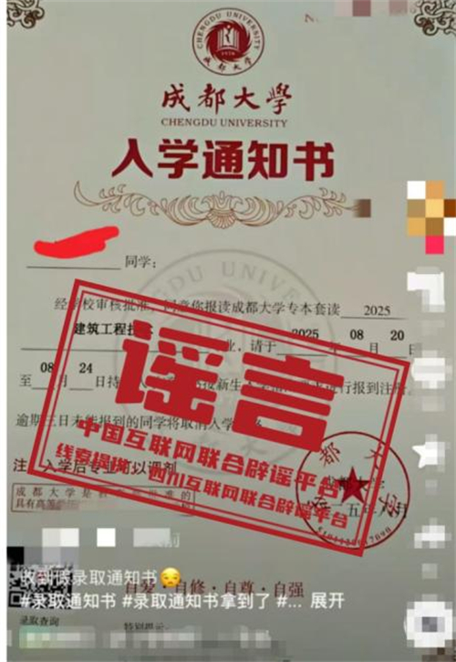 教育部多次提醒,部分機(jī)構(gòu)和個(gè)人打著普通高等學(xué)歷教育幌子,實(shí)際卻為自考助學(xué)、網(wǎng)絡(luò)教育等其他教育形式,或進(jìn)行虛假宣傳。如未通過(guò)高考招生錄取獲得正式通知書(shū),無(wú)法注冊(cè)普通高校正式學(xué)籍,也無(wú)法取得普通高等學(xué)校學(xué)歷證書(shū)。考生及家長(zhǎng)應(yīng)通過(guò)正規(guī)渠道核驗(yàn)錄取信息,嚴(yán)格保護(hù)個(gè)人信息,防止被不法分子利用。(來(lái)源:四川互聯(lián)網(wǎng)舉報(bào)辟謠平臺(tái)、成都網(wǎng)絡(luò)辟謠)