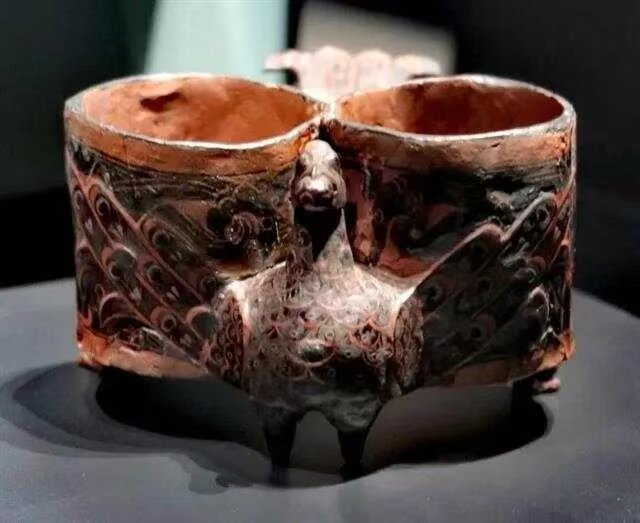 戰(zhàn)國彩繪漆木鳳鳥雙聯(lián)杯