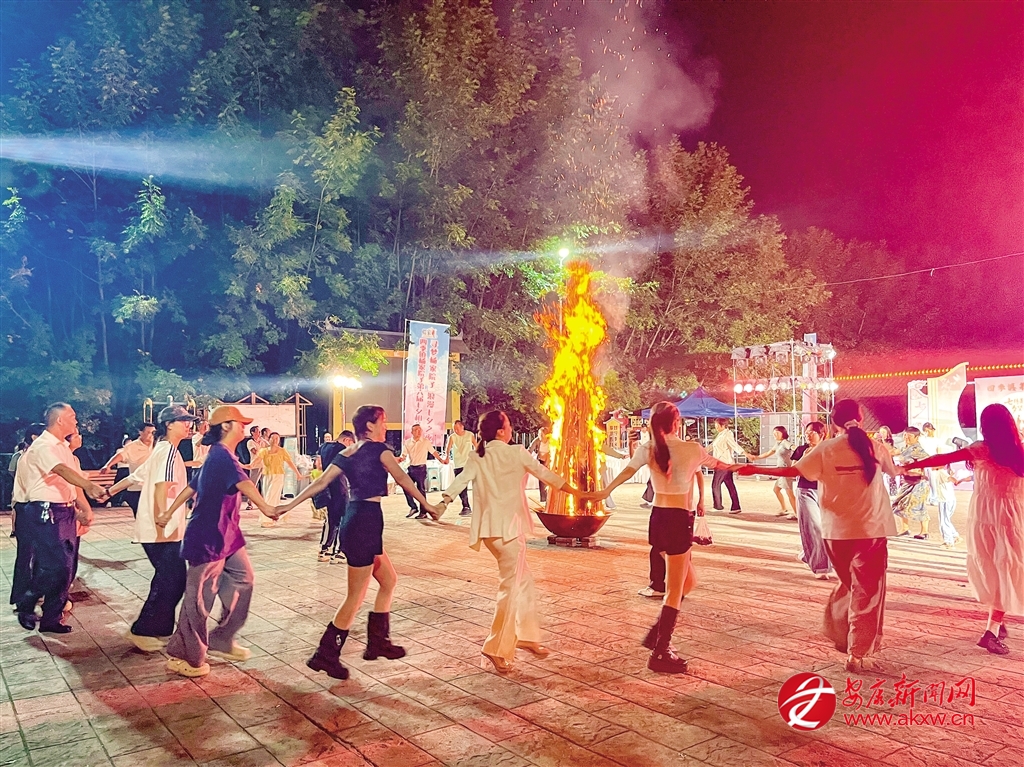 晚會尾聲,所有嘉賓與游客圍聚在篝火旁載歌載舞,歌聲、笑聲與火光交織在一起,構(gòu)成了這個夜晚最溫暖的回憶。