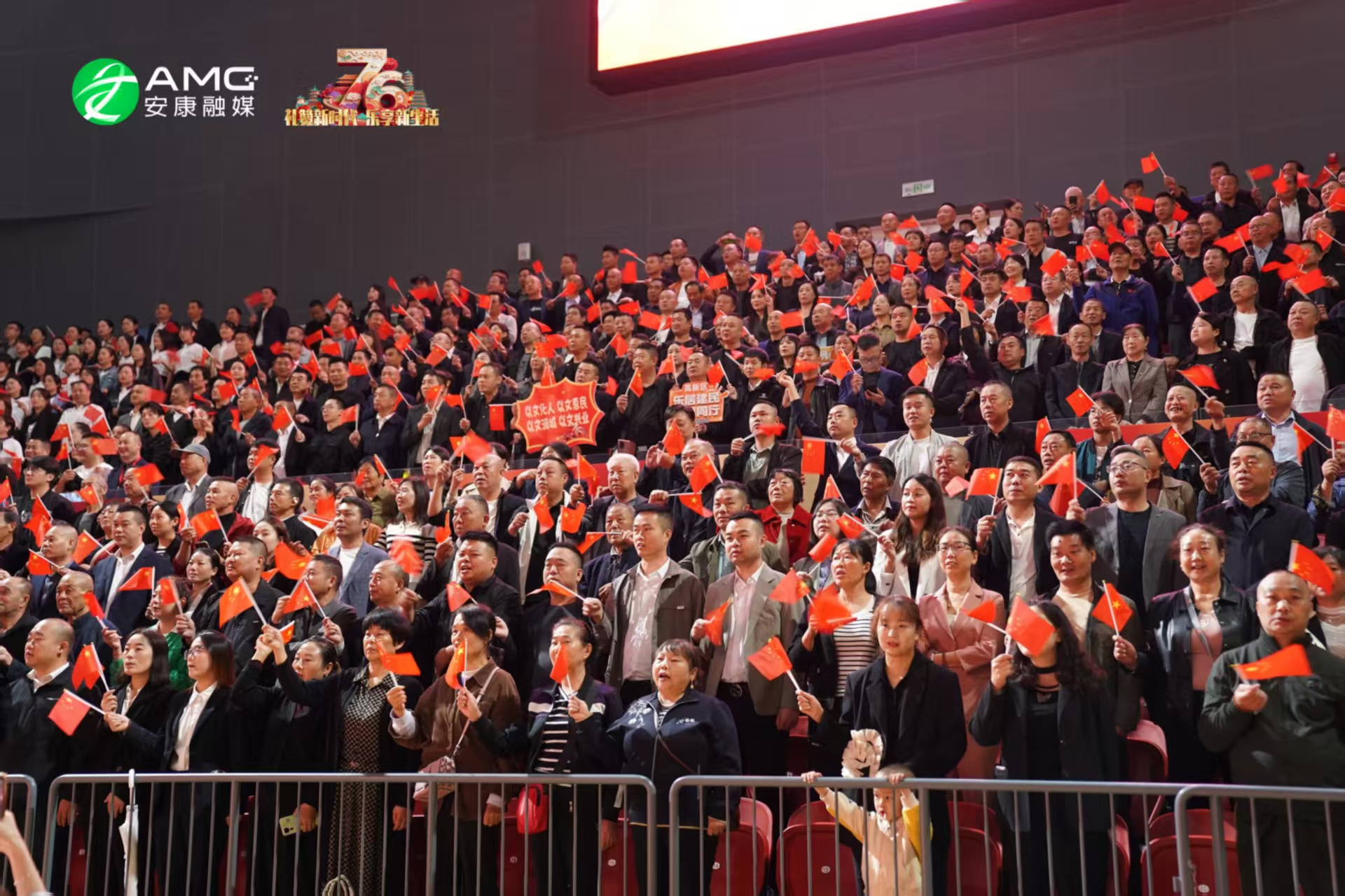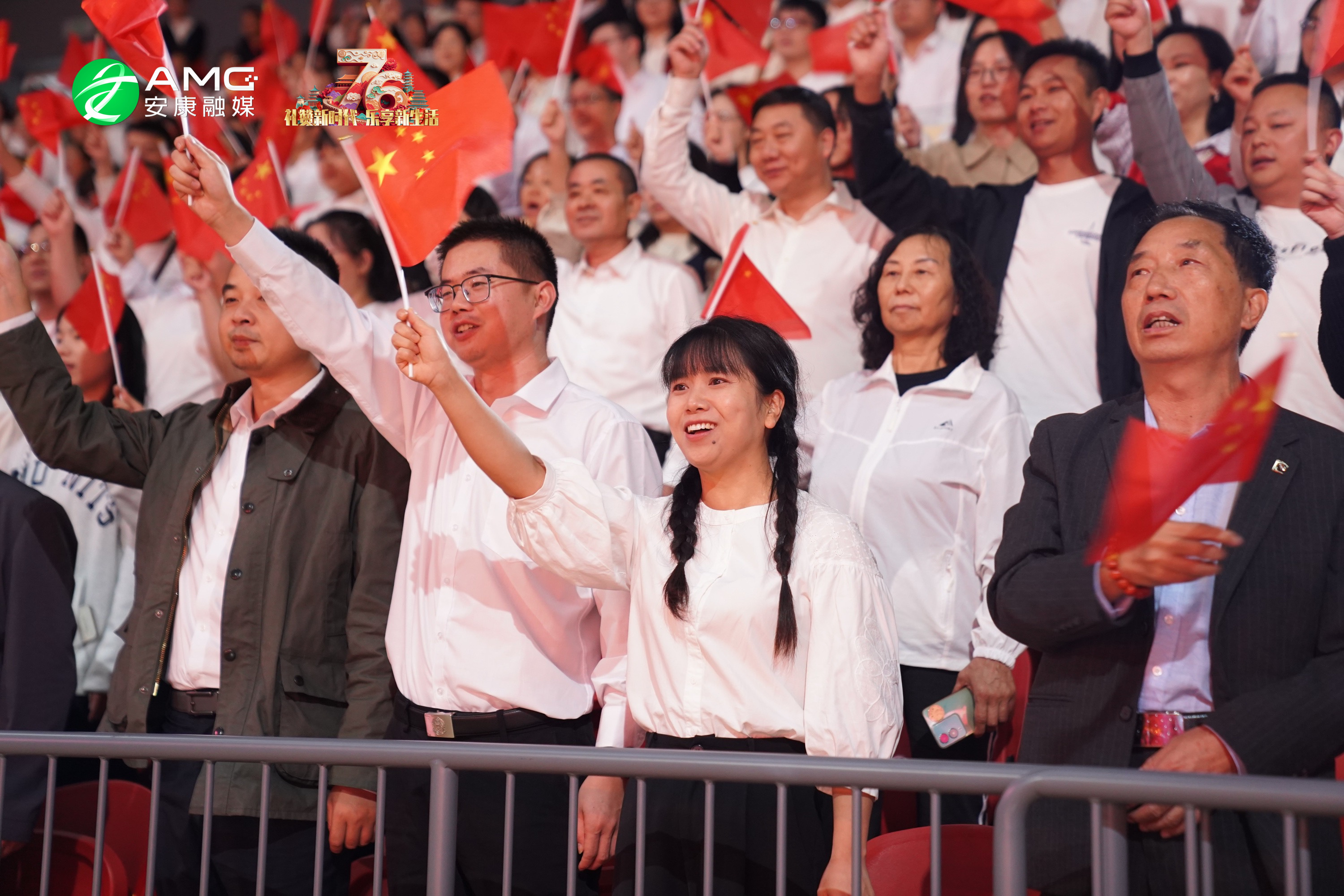 最后,全場人員起立揮舞紅旗,齊聲高唱《歌唱祖國》,用最真摯的歌聲祝福祖國繁榮昌盛,祝愿安康的明天更加美好。歌聲震徹場館,將整場活動推向高潮。