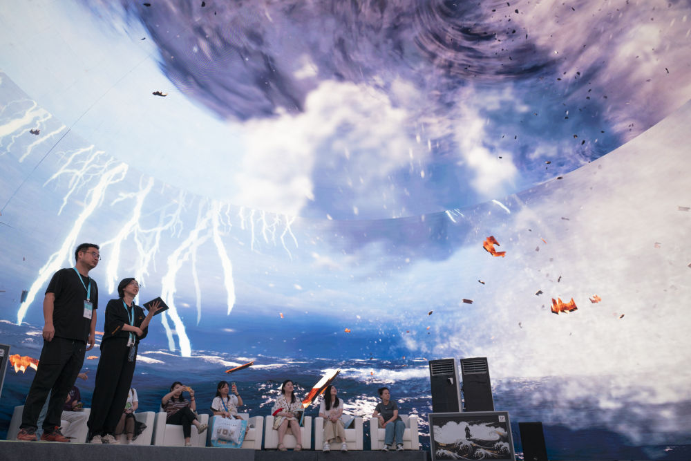 2025年9月12日,觀眾在2025中國文化旅游產(chǎn)業(yè)博覽會上參觀多業(yè)態(tài)文旅球幕。當日,2025中國文化旅游產(chǎn)業(yè)博覽會在武漢開幕,本次博覽會以“深化文旅融合 暢享美好生活”為主題,融合“展、演、銷、游”四大功能。室外展區(qū)展示以“河山添錦繡”為主題的文旅IP花車矩陣,室內(nèi)展館集中展現(xiàn)文旅新業(yè)態(tài)、新場景、新產(chǎn)品,涵蓋數(shù)字集群、智能導覽、低空文旅、非遺文創(chuàng)等方面,吸引了國內(nèi)2000余家展商以及50家海外旅行商參展。