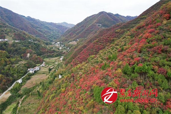 初冬時(shí)節(jié),地處秦嶺南麓的漢濱區(qū)早陽(yáng)鎮(zhèn)境內(nèi),滿(mǎn)山的紅葉把山村裝扮得美如一幅畫(huà),引得眾多游客和市民來(lái)這里賞紅葉、觀(guān)美景,盡享生態(tài)之美。圖為無(wú)人機(jī)視角下的早陽(yáng)紅葉美景。 (通訊員 周濤)