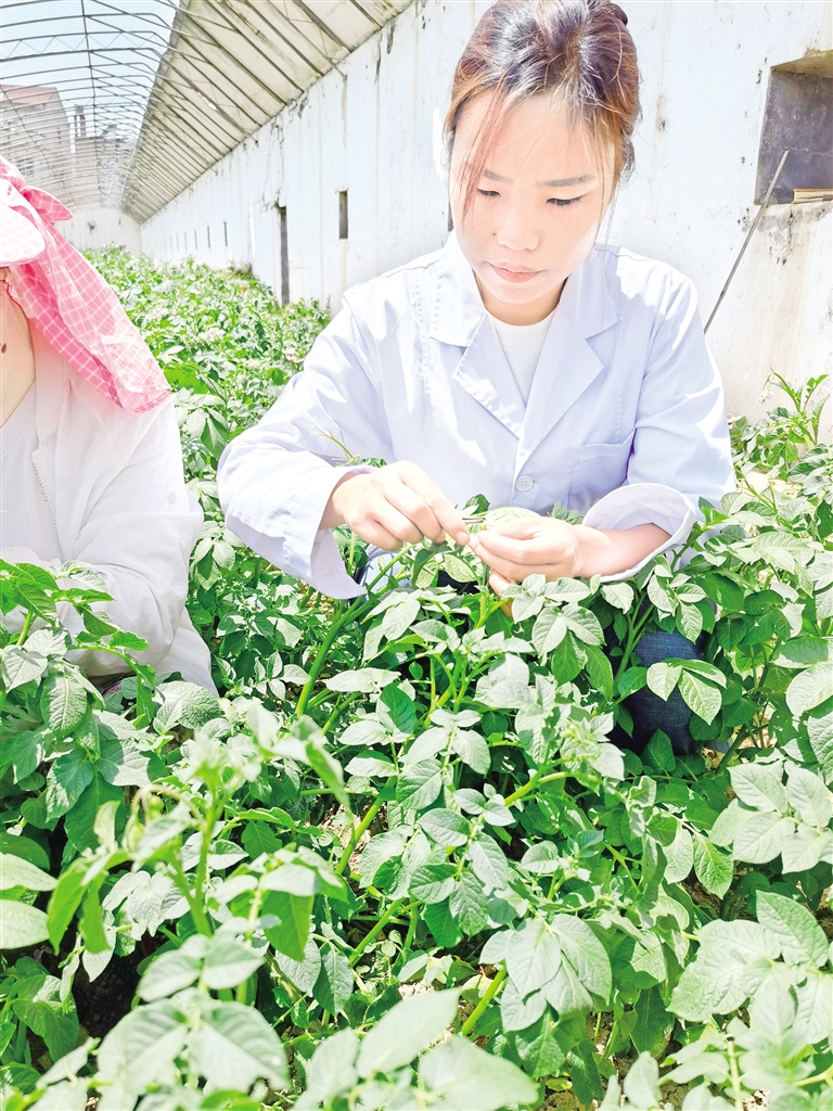 但更大的技術(shù)突破發(fā)生在實驗室和試驗田。在市農(nóng)業(yè)科學(xué)研究院的組培室內(nèi),科研人員正通過莖尖脫毒技術(shù),讓馬鈴薯實現(xiàn)“逆齡生長”。鄭敏告訴記者,團隊目前引進優(yōu)質(zhì)種質(zhì)資源20余個,雜交創(chuàng)制優(yōu)質(zhì)無性系材料百余份,篩選出中早熟優(yōu)系3個、中晚熟優(yōu)系8個并通過國家或省級區(qū)域試驗,形成了“研發(fā)一代、儲備一代、推廣一代”的良性循環(huán),構(gòu)建了完整的馬鈴薯種業(yè)創(chuàng)新體系。