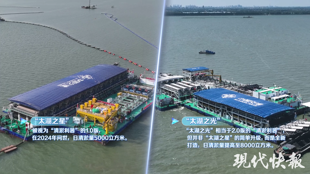 未來6年內(nèi),“太湖之光”在宜興太湖水域?qū)⑼瓿沙f立方米的清淤任務(wù),相當(dāng)于為太湖“減負(fù)”約4000個(gè)標(biāo)準(zhǔn)游泳池的淤泥量。同時(shí),“太湖之光”各艘模塊船可靈活組合、動(dòng)態(tài)調(diào)動(dòng),適配全國(guó)多個(gè)平原淺水型湖泊的治理需求。