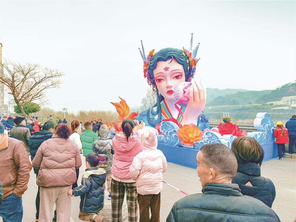 春節(jié)臨近,石泉縣依托獨特漢水文化、蠶桑文化、移民文化資源稟賦,通過設置漢江神女、蠶桑娘娘、嫦娥奔月、漢調(diào)二黃等造型獨特的燈飾,營造濃濃的新年氛圍。圖為1月17日下午,工人正在安裝燈飾。(譚文昌 攝)