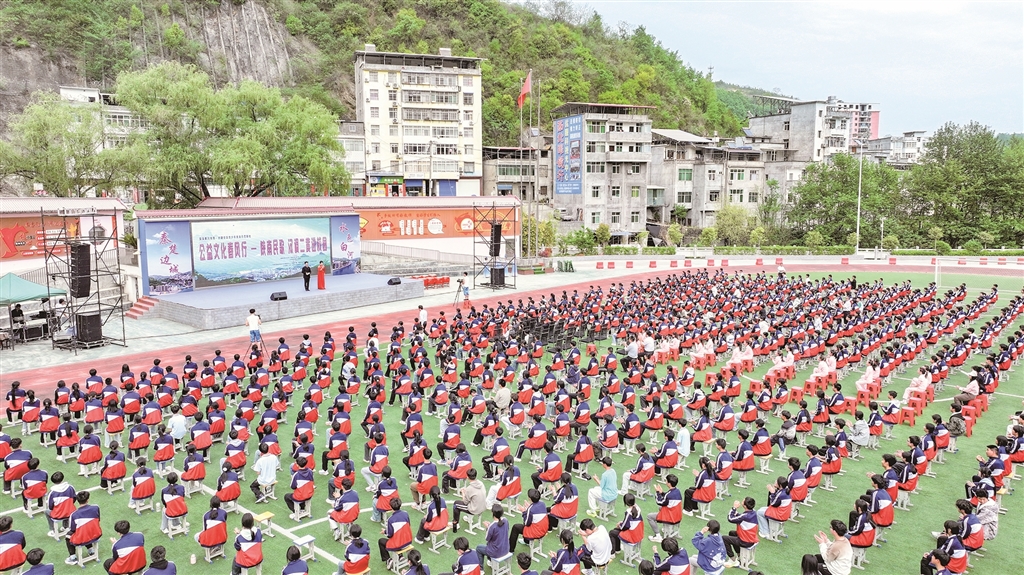 展演現(xiàn)場,紫陽小學(xué)學(xué)生帶來的民歌聯(lián)唱《童聲唱紫陽》贏得滿堂喝彩。孩子們用清亮的嗓音演繹《開山歌》《三月三上茶山》《螃蟹歌》等經(jīng)典陜南民歌,悠揚婉轉(zhuǎn)的旋律中透著童真童趣,將地域文化的獨特韻味展現(xiàn)得淋漓盡致。“這首歌是奶奶教我唱的,現(xiàn)在我在學(xué)校社團里學(xué)會了更多唱法?!敝鞒獙W(xué)生鄧可唯說,通過美育課程,她不僅學(xué)會了唱歌,還了解了民歌背后的民俗故事。