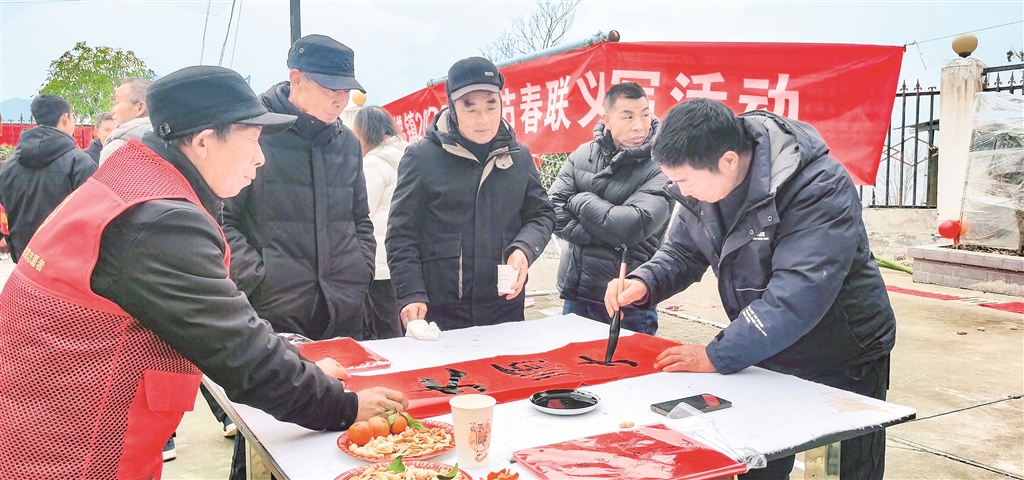 “‘村晚’既注重豐富群眾的文化生活,也著力帶動村民增收。”楊寇村包聯(lián)干部、石梯鎮(zhèn)農村農業(yè)中心主任王化澎介紹了活動的初衷。現(xiàn)場設置的送春聯(lián)區(qū),書法愛好者揮毫潑墨,一副副對聯(lián)、一個個“?!弊直淮迕裥老步舆^;就業(yè)推薦區(qū)前,大家認真查看《漢濱區(qū)2026年用工單位招聘崗位需求表》,挑選心儀崗位;農副產品展銷區(qū),農家自產的紅薯、蔬菜,自制的豆腐乳、醪糟、變蛋等,吸引了眾多來自安康中心城區(qū)的市民爭相搶購。
