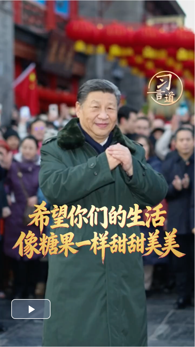 每逢春節(jié)前夕,總書記都會走到基層、百姓中間。在天津古文化街,總書記掏錢買麻花作為見面禮,送給身旁的小朋友,說“送你一份麻花”;在遼寧,總書記接下孩子們遞來的糖果,親切地說,你們的糖我收下,吃了你們的糖心里很甜。一個(gè)個(gè)親切有愛的感人畫面,充滿了溫情,傳遞著感動。