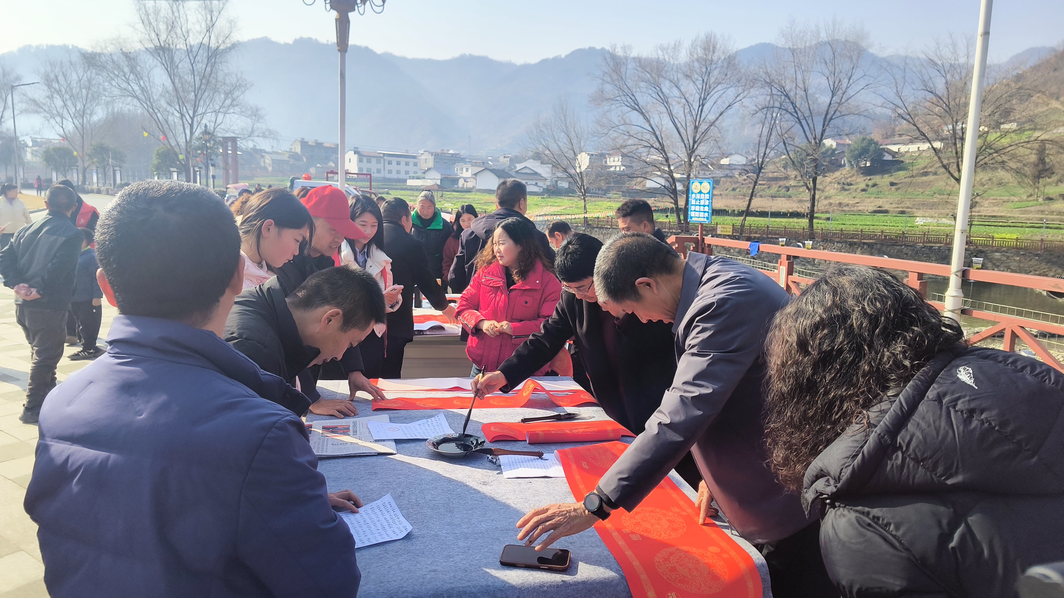 2月5日,平利縣文聯(lián)、書(shū)協(xié)聯(lián)合大貴鎮(zhèn)公共文化服務(wù)共同體分中心、新時(shí)代文明實(shí)踐所,在集鎮(zhèn)親水廣場(chǎng)開(kāi)展義寫(xiě)春聯(lián)活動(dòng),以翰墨傳遞新春祝福,用文化賦能文明實(shí)踐。 陳青青 攝