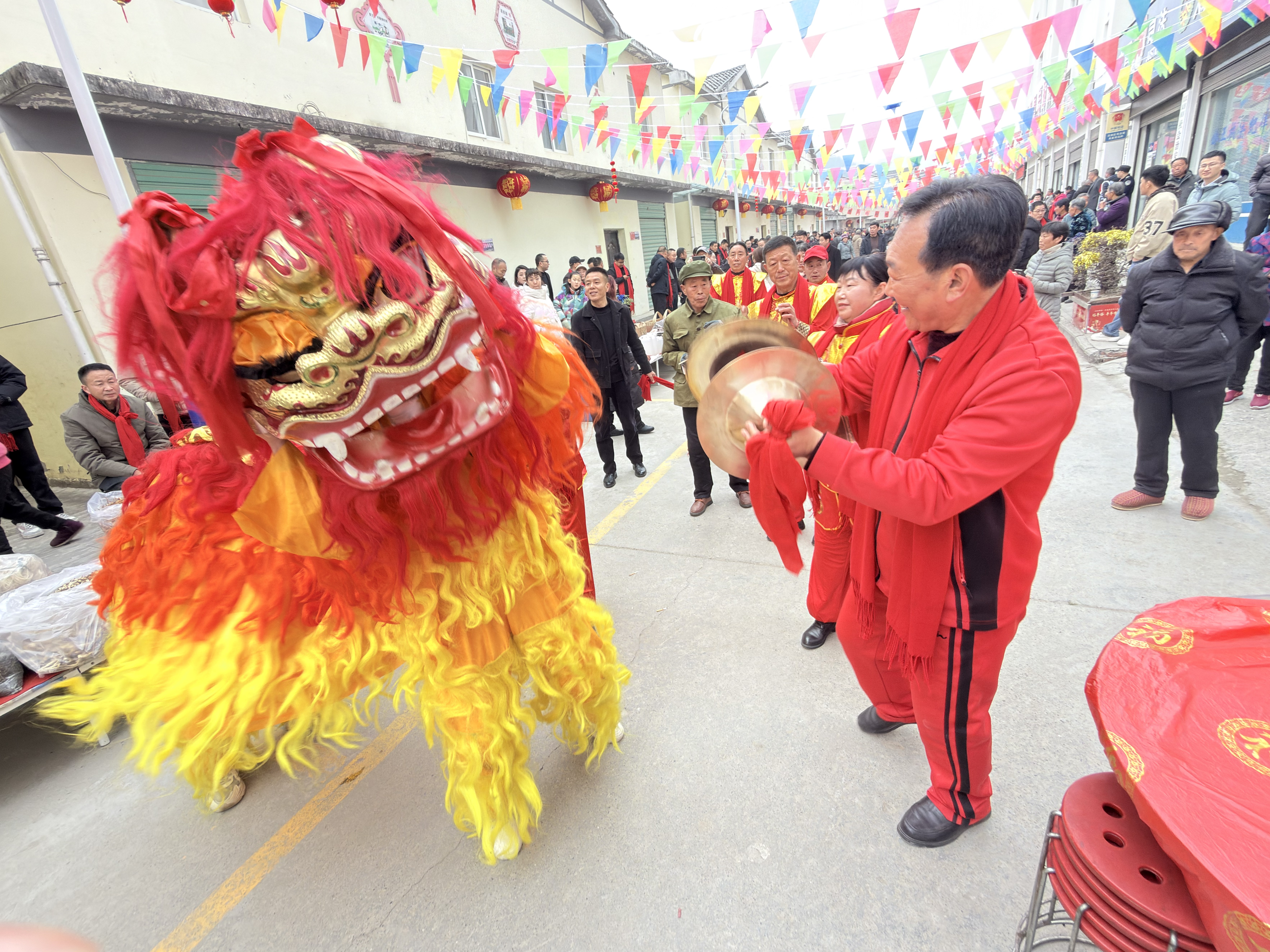 器樂演奏者與舞獅互動