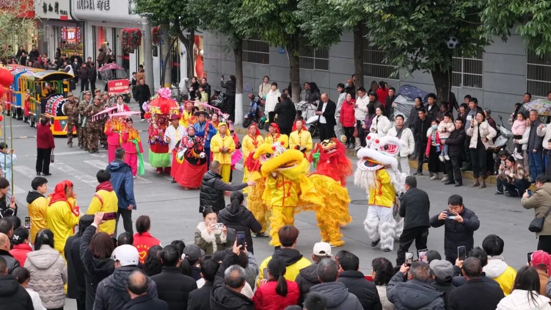 觀眾熊苗苗:很遠就被鑼鼓喧天的場景給吸引了,看到有很多隊伍在演出,有年紀大的叔叔阿姨,也有很小的弟弟妹妹。這個場景真的非常熱鬧,讓人看著很開心,年味十足。