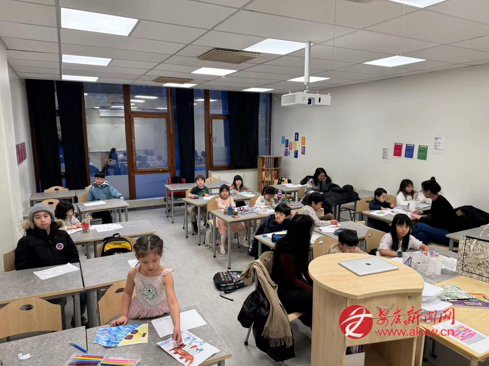 這是她在哥德堡居住的第三個(gè)年頭。2023年8月,邱萌隨丈夫從西安來到這座瑞典第二大城市。如今,她是當(dāng)?shù)厝A文學(xué)院的一名美術(shù)老師,面對4歲半至10歲華人子女和混血孩童,她用畫筆打開了一扇窗。中秋節(jié)畫月餅,今年是馬年,她就帶著孩子們畫生肖馬?!袄L畫是最好的語言,”她說,“和孩子們之間的交流不需要太多的語言,繪畫就是最直觀的表達(dá),通過這些月亮、月餅和兔子的圖案,能夠讓他們認(rèn)識中秋節(jié),理解團(tuán)圓的意義、故鄉(xiāng)的牽掛?!?/p>