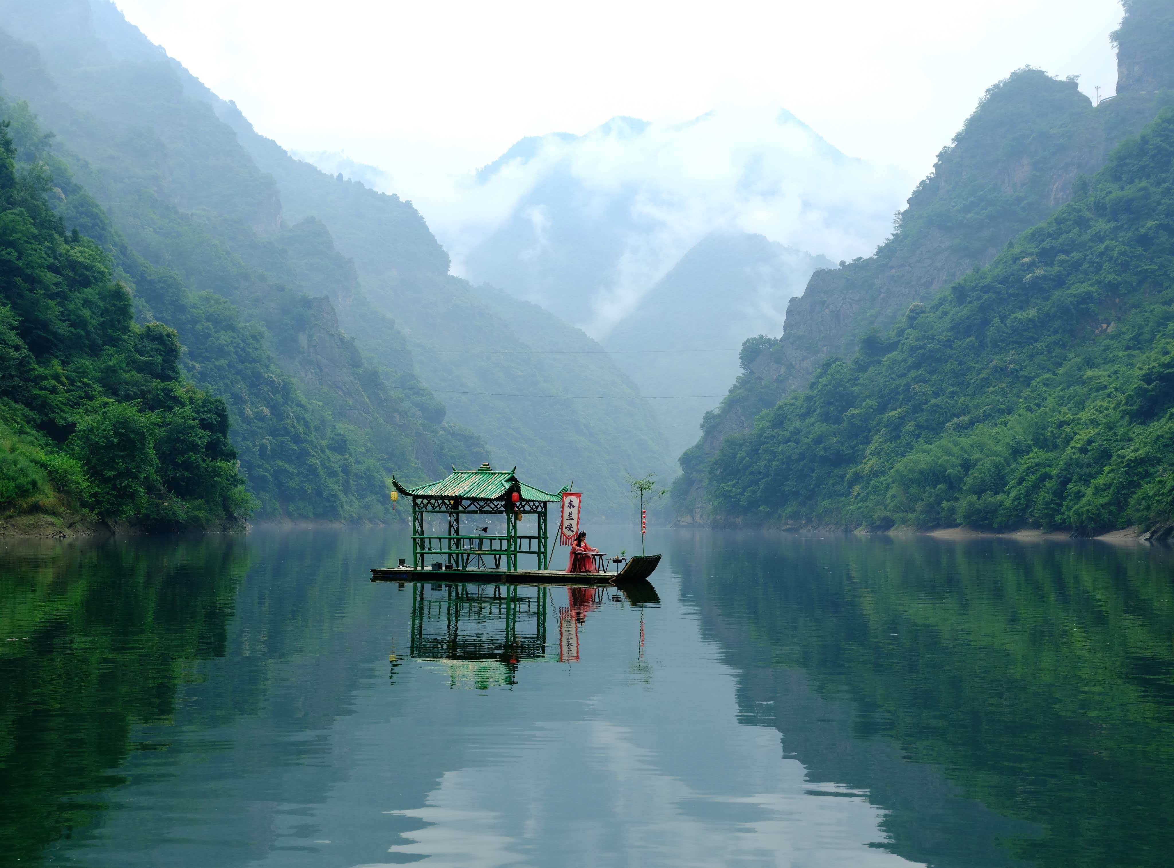 2012年夏天,我陪客人走進(jìn)毛壩鎮(zhèn)。朋友做向?qū)?,這才第一次見(jiàn)識(shí)了木蘭峽,紫陽(yáng)的深山里,原來(lái)藏著這般景致。峽水幽幽,綠得深沉,不起一絲波瀾。小船行在水上,像是劃破了一匹綠綢子;又像是根本沒(méi)動(dòng),只靜靜地浮著,浮在一整個(gè)下午的光陰里。兩岸奇峰默然對(duì)峙,滿坡蓊蓊郁郁,盡是些叫不出名字的樹(shù)木。偶爾有野山羊從崖邊下來(lái),到峽邊低頭喝水,見(jiàn)了人也不是很怕。峽的盡頭,一段古纖道斜斜地臥在峽邊,石頭上還留著當(dāng)年的鑿痕。不遠(yuǎn)處立著一塊清代道光年間的石碑,上面的字跡雖已模糊,卻仿佛還在那里,低聲訴說(shuō)著從前的熱鬧。