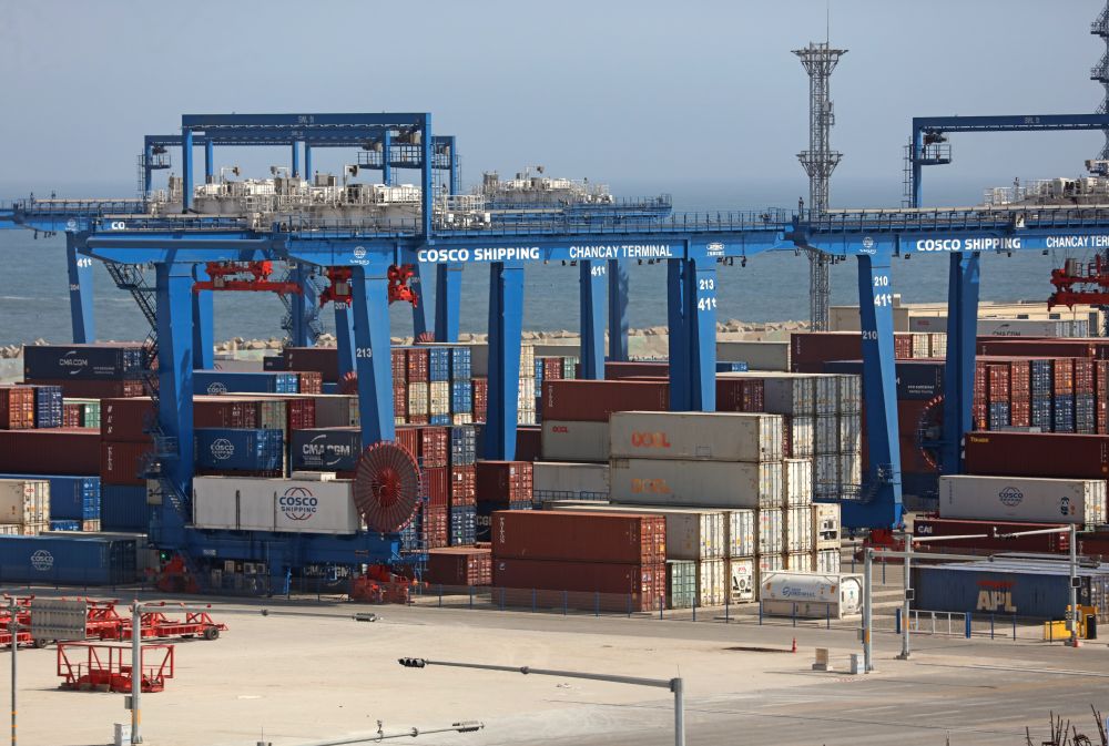 這是2025年10月7日拍攝的秘魯錢(qián)凱港碼頭擺放的集裝箱。位于秘魯首都利馬以北約80公里的錢(qián)凱港于2024年11月正式開(kāi)港,標(biāo)志著中秘共建“一帶一路”取得新的重要成果。新華社發(fā)(瑪麗安娜·巴索 攝)