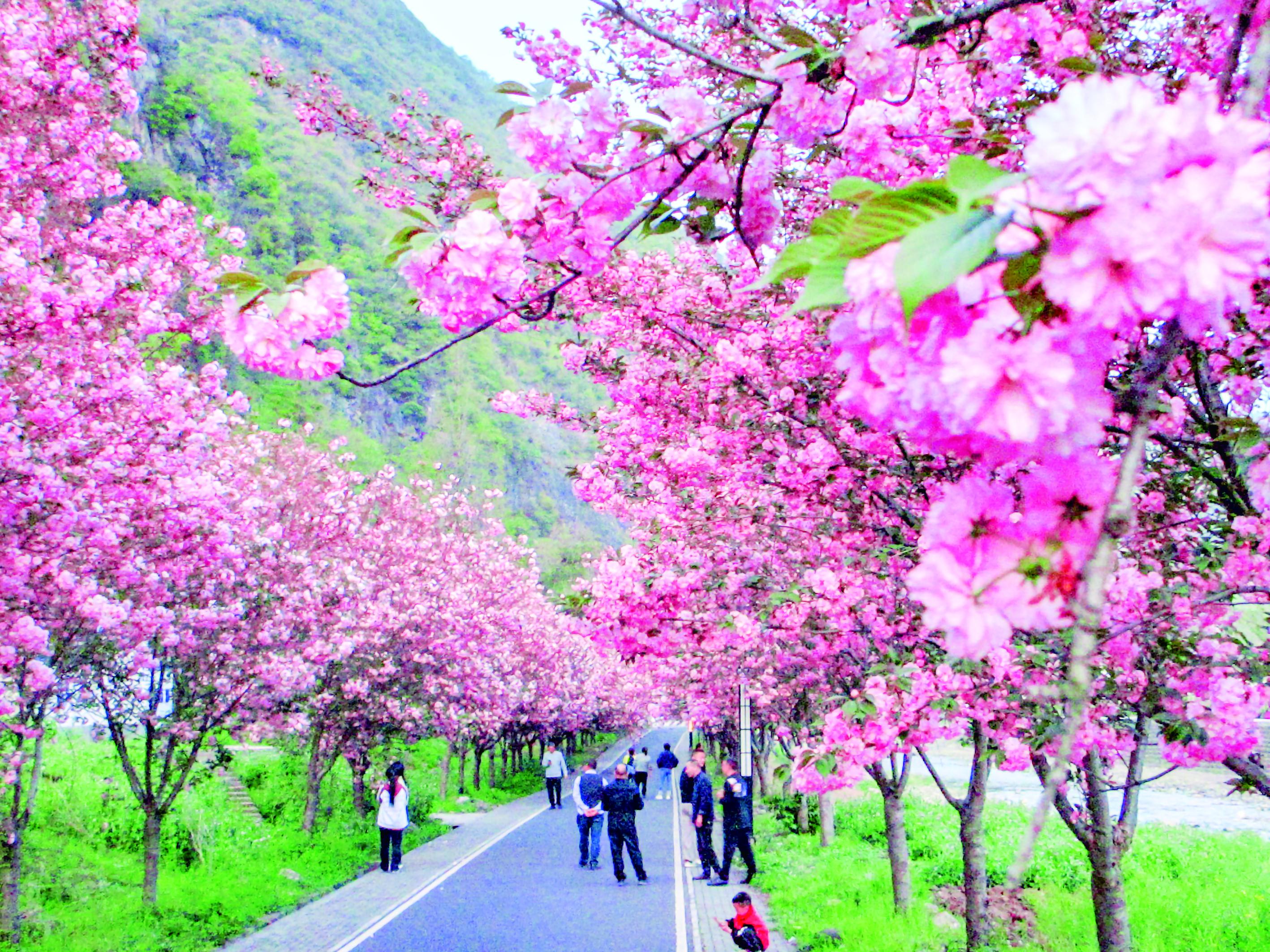 4月4日,平利縣城關(guān)鎮(zhèn)金華村的櫻花進(jìn)入盛花期,不少游客專程前來賞花拍照。 劉應(yīng)珊 攝