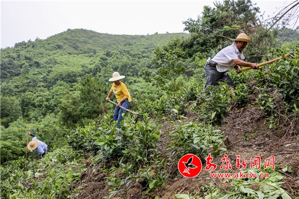 在橋河林場(chǎng),一株株茶樹深深地扎根在60度的山坡上,這是上世紀(jì)70年代種植的老茶園,漢濱區(qū)德潤(rùn)天然富硒農(nóng)產(chǎn)品開發(fā)有限公司的王彪正帶領(lǐng)茶農(nóng)們?cè)谛拚,將建成?biāo)準(zhǔn)化的示范茶園。不同于和農(nóng)戶逐個(gè)簽訂土地流轉(zhuǎn)合同,德潤(rùn)公司直接與橋河村簽訂協(xié)議,把撂荒的3000畝林場(chǎng)土地全都承包下來。