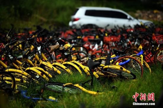 資料圖:堆積如山的共享單車。中新社記者 李進紅 攝