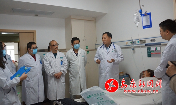 練學(xué)淦首先在鎮(zhèn)坪縣醫(yī)院內(nèi)科病區(qū),以2名腦梗塞患者為例進行示范性教學(xué)查房,來到病房詳細(xì)聽取了主管醫(yī)生的病例匯報。在凝神聽取主管醫(yī)生的匯報后,練主任在患者床旁同患者及家屬交談,并親自進行查體,了解疾病發(fā)展過程中的每個細(xì)節(jié),一絲不茍的從頭查起。