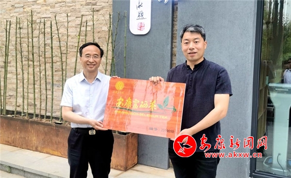 活動結束后,魯琦一行還來到西安市曲江新區(qū)雁鳴湖茶莊為京康現(xiàn)代農業(yè)有限公司安康富硒茶專營店授牌。