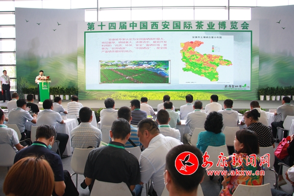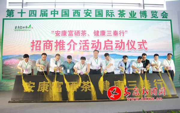 本網(wǎng)訊 (記者 陸青波)8月21日,借助第十四屆西安國際茶業(yè)博覽會(huì)平臺(tái), 我市在西安啟動(dòng)“安康富硒茶、健康三秦行”首場(chǎng)招商推介活動(dòng)。中國茶葉流通協(xié)會(huì)會(huì)長(zhǎng)、全國茶葉標(biāo)準(zhǔn)委員會(huì)主任王慶,陜西省農(nóng)業(yè)農(nóng)村廳黨組成員、副廳長(zhǎng)王韜,陜西省供銷合作總社黨組成員、副主任劉慶,陜西省茶業(yè)協(xié)會(huì)會(huì)長(zhǎng)紀(jì)曉明出席啟動(dòng)儀式,市政協(xié)副主席馬曉旬宣布“安康富硒茶、健康三秦行”招商推介活動(dòng)啟動(dòng)。