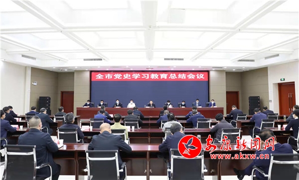 武文罡指出,在全黨開展黨史學(xué)習(xí)教育,是以習(xí)近平同志為核心的黨中央立足百年建黨偉業(yè)新起點、著眼開創(chuàng)事業(yè)發(fā)展新局面作出的一項重大戰(zhàn)略決策。習(xí)近平總書記高度重視,多次發(fā)表重要講話、作出重要指示,為黨史學(xué)習(xí)教育高起點開局、高標準推進指明了前進方向。一年來,全市上下深入學(xué)習(xí)貫徹習(xí)近平總書記關(guān)于黨史學(xué)習(xí)教育的重要論述,聚焦“學(xué)史明理、學(xué)史增信、學(xué)史崇德、學(xué)史力行”目標要求,把在貫通歷史與現(xiàn)實中做到“兩個維護”作為鮮明主線,把“學(xué)史悟思想強根鑄魂 奮進新時代追趕超越”作為重要抓手,精心組織實施,扎實有序推進,黨史學(xué)習(xí)教育取得了良好效果、達到了預(yù)期目的。要持之以恒推進黨史總結(jié)、學(xué)習(xí)、教育、宣傳,常態(tài)化長效化推進黨史學(xué)習(xí)教育,引導(dǎo)黨員干部大力弘揚偉大建黨精神,埋頭苦干、勇毅前行,奮力走好新的趕考之路。