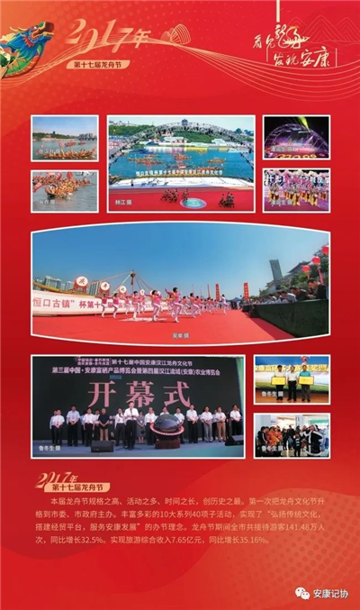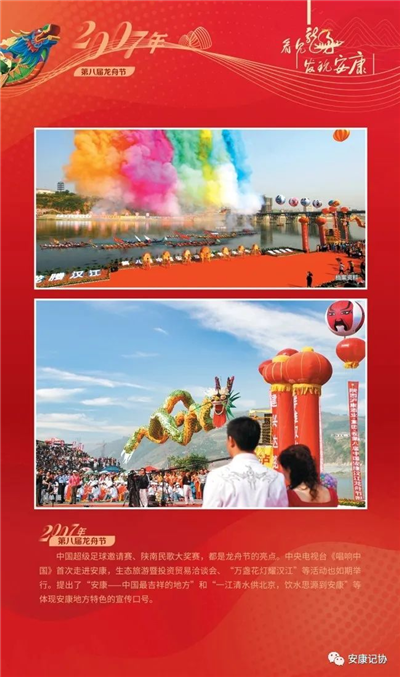 每一個珍貴的瞬間,都是安康社會發(fā)展的典藏。安康漢江龍舟競渡歷史悠久、源遠(yuǎn)流長。特別是進(jìn)入新世紀(jì)以來的2000年至今,“中國安康漢江龍舟節(jié)”已成功舉辦21屆,先后入選“中國十大魅力節(jié)慶”、中國體育類非物質(zhì)文化遺產(chǎn)保護(hù)與推廣項目,成為我市聚集人氣、繁榮文化、發(fā)展經(jīng)濟(jì)、擴(kuò)大開放的金色名片。